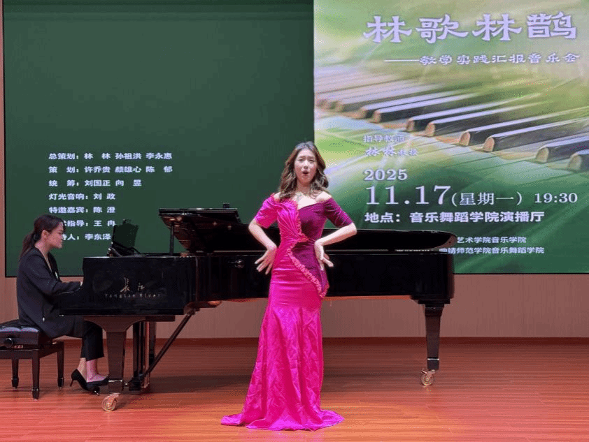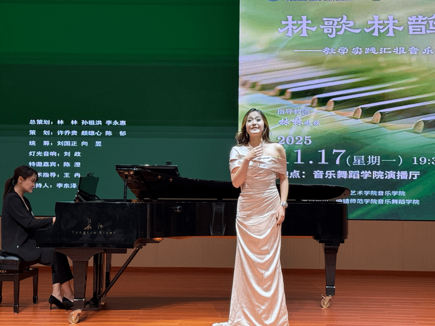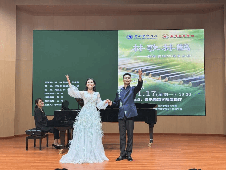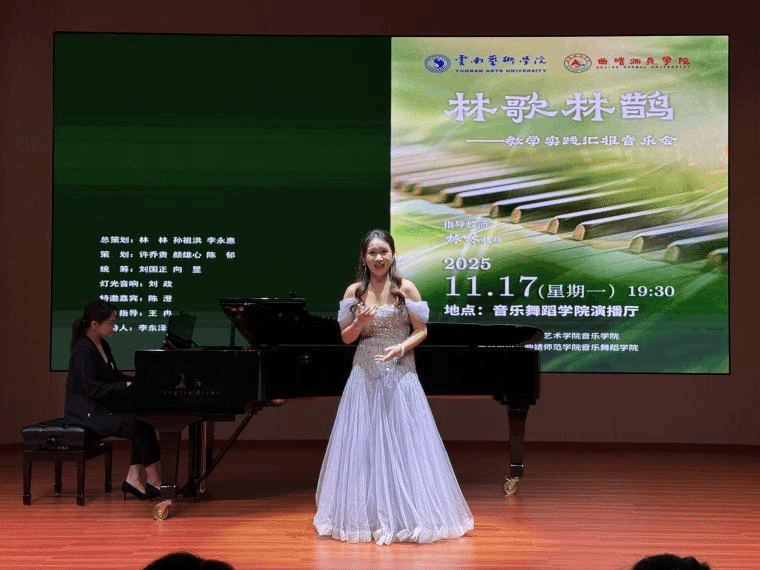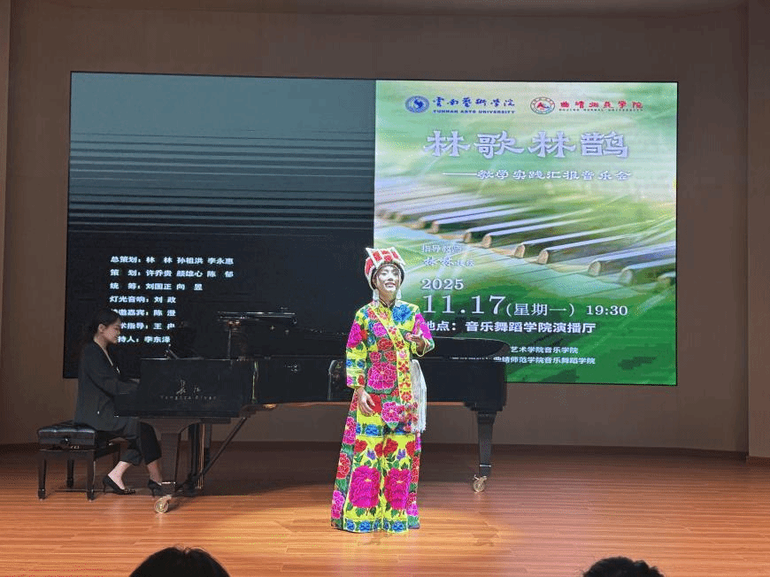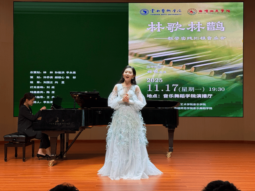2025年11月17日,“林歌林鹊”——林林教授教学实践汇报音乐会在曲靖师范学院音乐舞蹈学院演播厅圆满举行。此次音乐会由云南艺术学院音乐学院主办,曲靖师范学院音乐舞蹈学院承办。