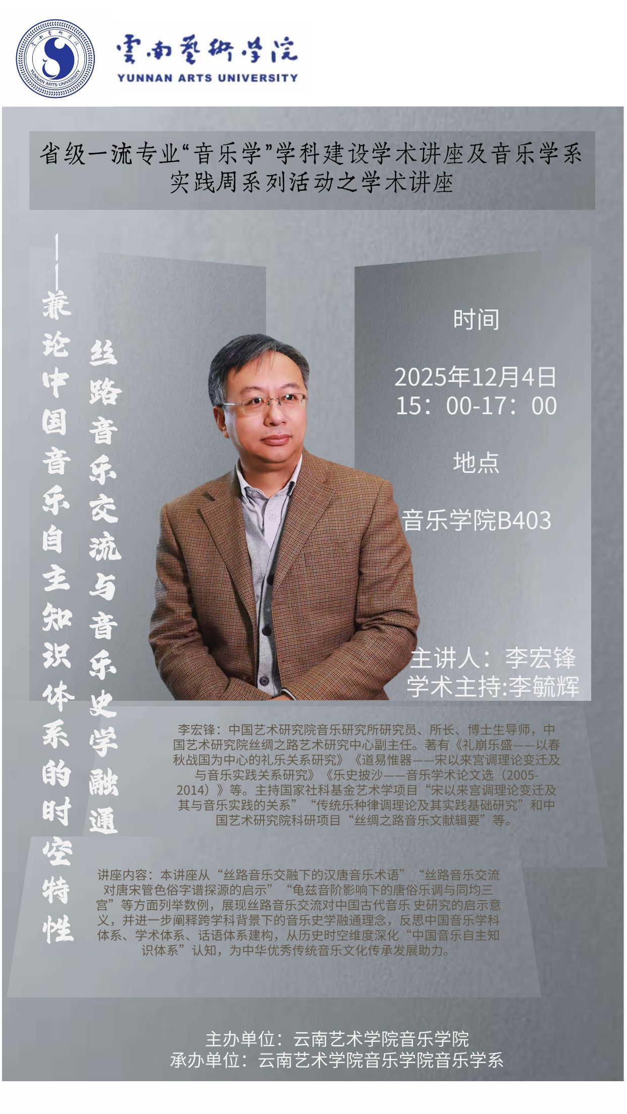 省级一流专业“音乐学”学科建设学术讲座及音乐学系实践周系列活动之学术讲座:丝路音乐交流与音乐史学融通——兼论中国音乐自主知识体系的时空特性