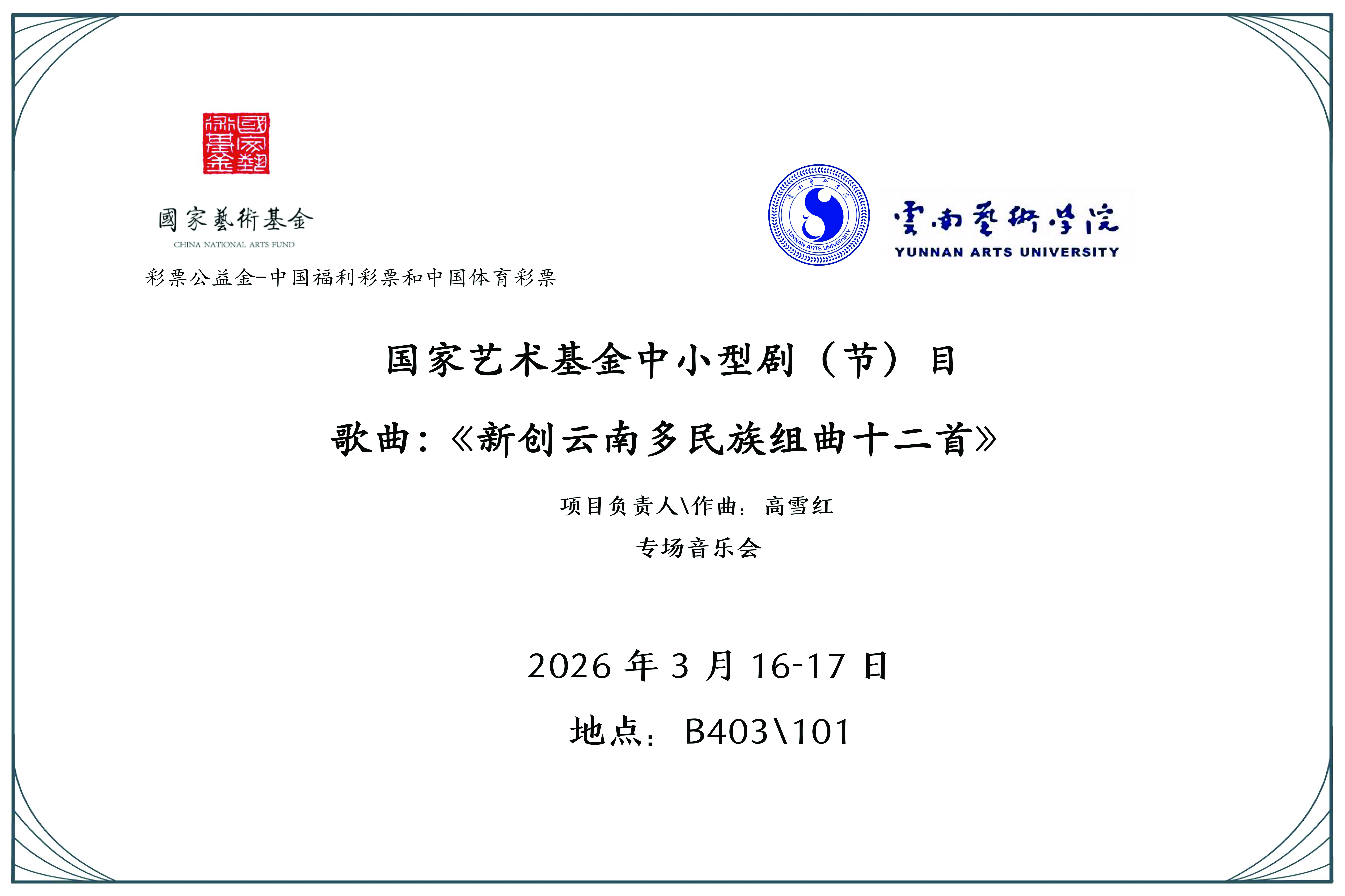 歌曲:《新创云南多民族组曲十二首》专场音乐会