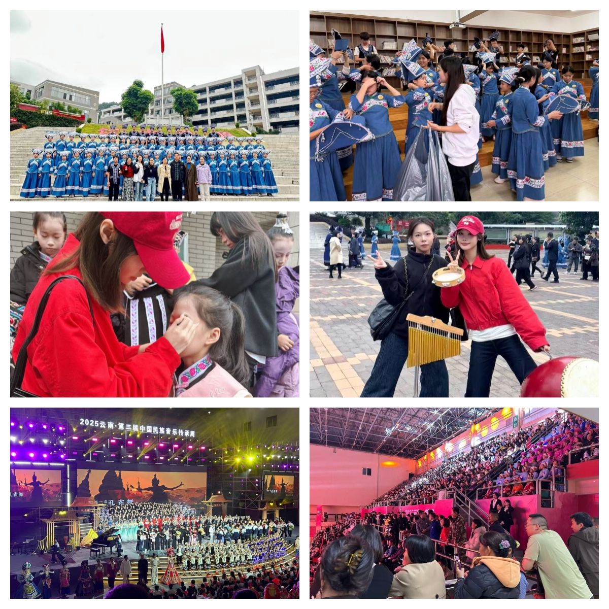 在“第三届中国民族音乐传承周·央音进校园”活动中,第五批美育浸润计划支教同学李垚垚、沈于童、陈雨晗在富宁县第一中学、富宁县第一小学协助完成坡芽歌书合唱团的组织协调工作,为学校师生的顺利展演贡献了自己的力量。当晚,美育浸润师生团队于富宁县天成体育馆观看了中央音乐学院师生闭幕式音乐会,全体师生在观摩学习中接触吸收了前沿的民族音乐传承理念,助力支教团队教学与专业技能的精进提升。
