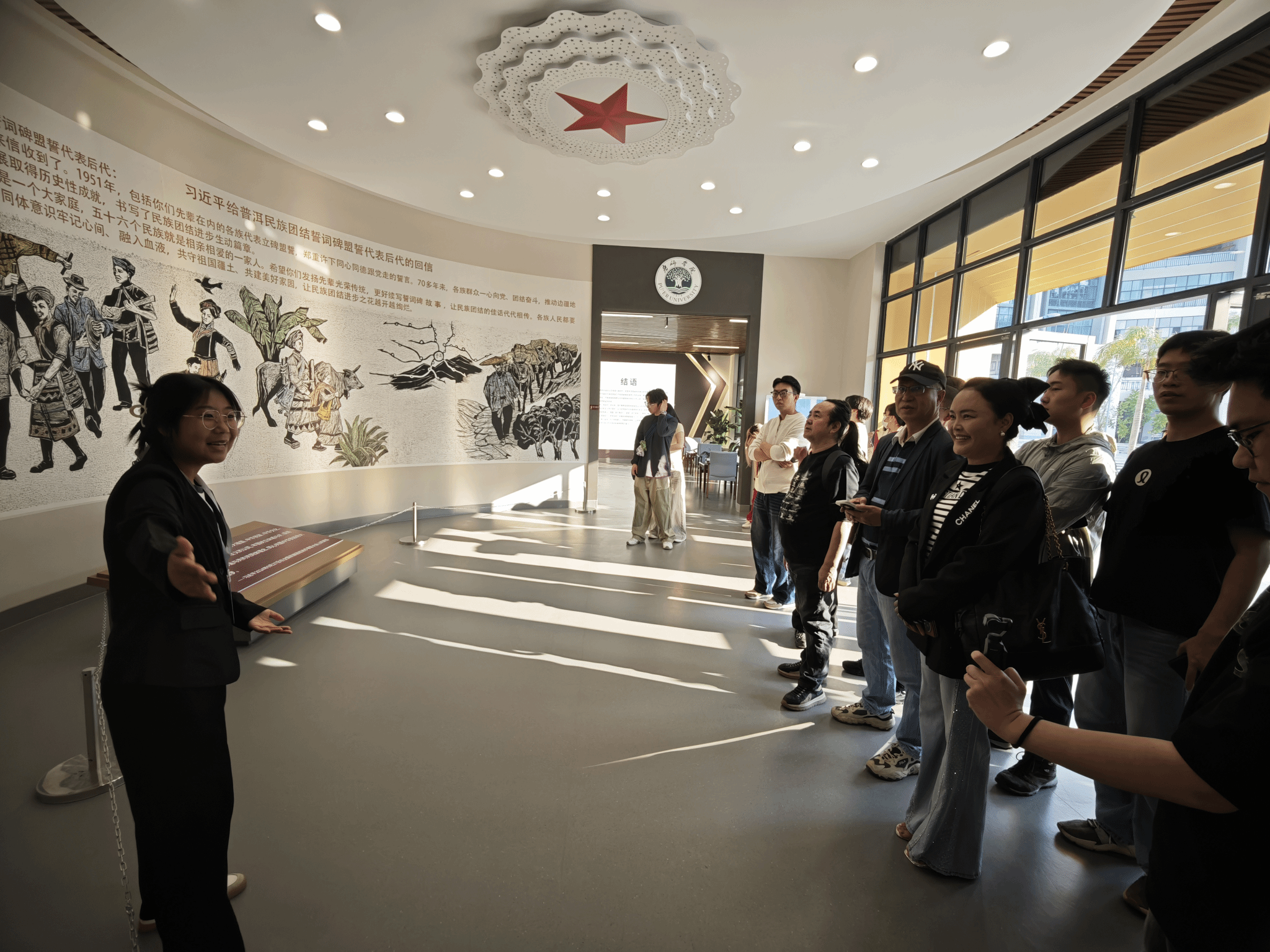 活动伊始,云南艺术学院音乐学院作曲系师生一同参观了铸牢中华民族共同体意识教育场馆。通过现场讲解、图文展示、实物陈列等多种形式,师生们全面深入学习了铸牢中华民族共同体意识的深刻内涵与时代价值,深刻感受到各民族文化交融共生、团结奋进的深厚底蕴。大家纷纷表示,此次参观学习是一次深刻的思想洗礼,在今后的音乐学习与创作中,将始终坚守中华文化立场,把民族团结理念融入艺术实践,用音乐作品讲好民族团结故事、传承中华优秀传统文化。