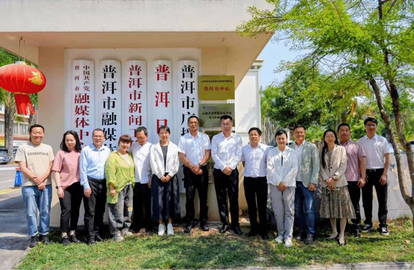 为深入学习贯彻习近平文化思想,落实省委、省政府关于文化和旅游融合发展的决策部署,深化校地协同育人与服务地方发展,2026年4月7日上午,云南艺术学院音乐学院、影视学院赴普洱市采风创作交流座谈会在普洱市融媒体中心举行。本次座谈会以“寻音普洱 传承非遗——艺术赋能文旅高质量发展”为主题,校地双方共商艺术赋能文旅融合发展计划,同时共建云南艺术学院音乐学院实习实践基地。