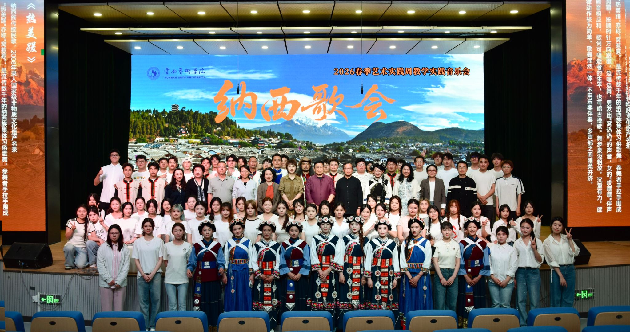 通过紧锣密鼓的排练后,在4月14日晚19:30,“纳西歌会”主题音乐会在安康音乐厅正式拉开帷幕。舞台上,同学们以饱满的热情演绎了实践周所学的纳西族经典作品,生动展现了纳西族音乐的多元魅力,也呈现了本次实践周的丰硕成果。现场掌声不断,师生们在悠扬的歌声与优美的舞姿中,共同感受纳西族音乐文化的鲜活生命力。