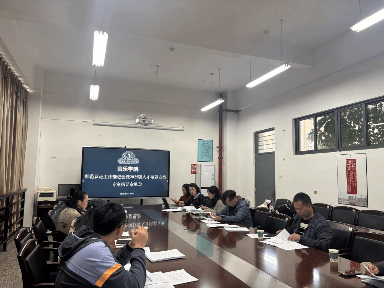 为扎实推进音乐师范类专业认证工作,优化2025版本科人才培养方案,音乐学院于2025年9月30日上午组织召开师范专业认证工作推进会暨人才培养方案专家指导意见会。会议由侯静宜副院长主持,音乐教育系教师参加,学校教务处处长温泉沁到会指导。