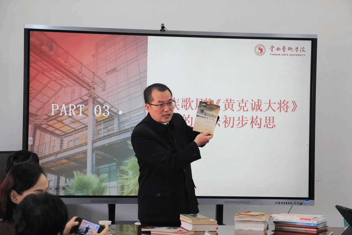 作为湘南学院优秀校友,云南艺术学院副教授邓波博士回顾了个人学术与职业发展历程,介绍了其主持和参与的13项课题、多项获奖成果及音乐创作实践。他重点解析了中国民族歌剧《黄克诚大将》的初步创作思路,强调作品应扎根历史、深度融合湖南民歌与戏曲等元素,并呼应国家主流文艺政策导向。