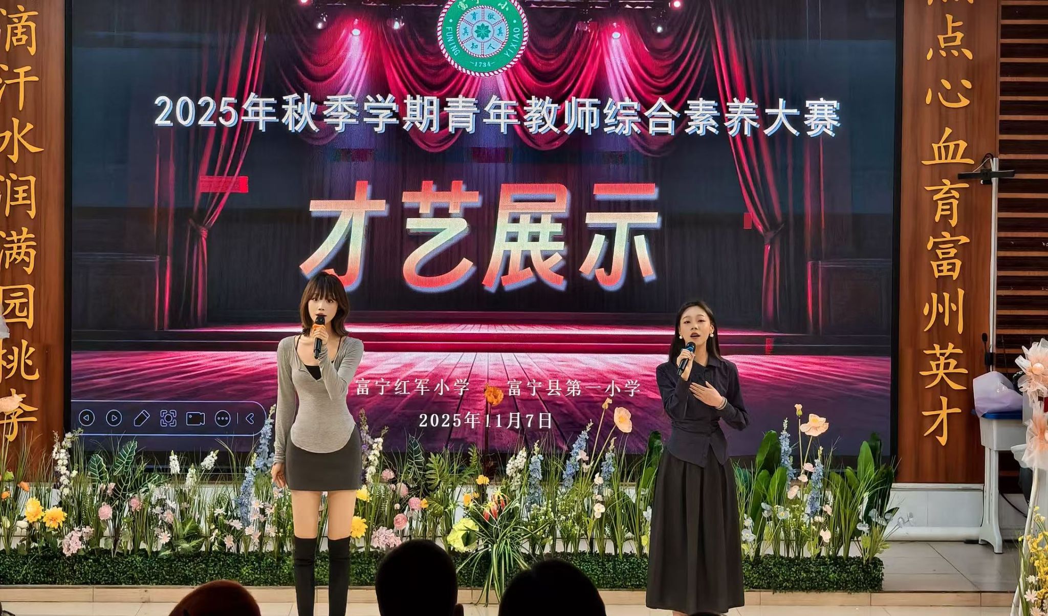 在富宁县各校举办艺术体育节之际,美育浸润团队支教学生也积极参与到各项展演活动中,李垚垚、沈于童同学助演了富宁县第一小学2025年秋季学期青年教师综合素养大赛,专业的演唱表现收获了在校师生的一致好评;带队教师洪旸与李佳溪、李垚垚同学共同赴富宁县思源实验学校助演了第八届文体艺术节综合晚会,两位同学带来了经典民谣歌曲《梨花又开放》,精彩的演唱赢得了在校师生的好评与掌声。