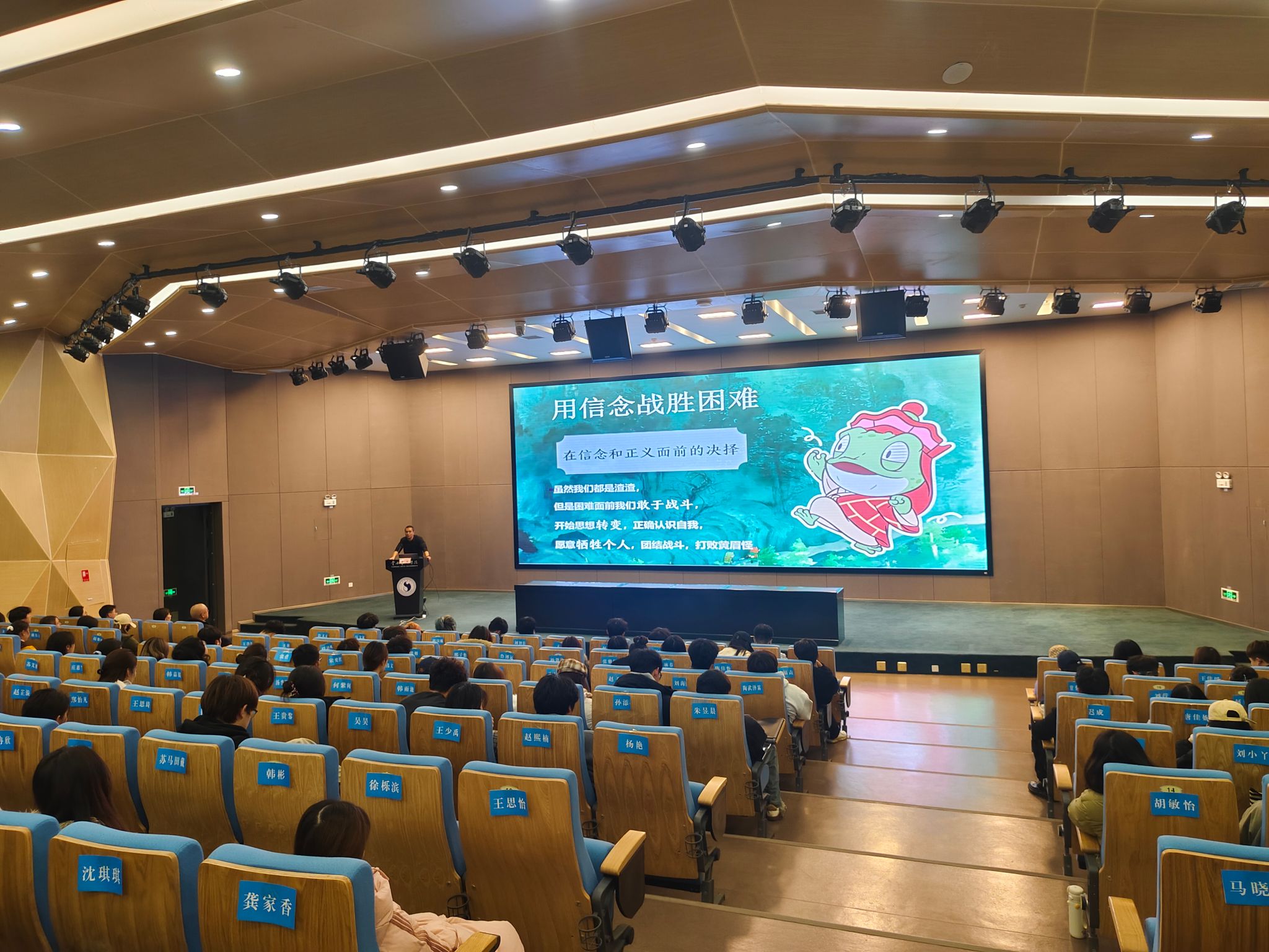 12月19日18:00,学生处(学生工作部、武装部)处长黄涛老师作《学生干部的基本素养》专题讲座。黄老师以“每个人都能走出自己的浪浪山”为切入点,通过互动问答和情景回顾,引导学生深入思考求学目标、成才方向与人生规划,强调学生干部要在服务同学中锤炼自我,发挥示范引领作用,锤炼品德修为,强化责任担当,真正做到心中有信念、肩上有责任、手中有方法。讲座尾声,音乐学院党委书记童汝全老师在总结讲话中指出,大学是世界观、人生观、价值观形成的关键时期,学生干部更应珍惜时光,注重综合能力的全面提升,在思想、学业和日常行为中做出表率,努力成为自立自强、德才兼备的旗帜和标杆。